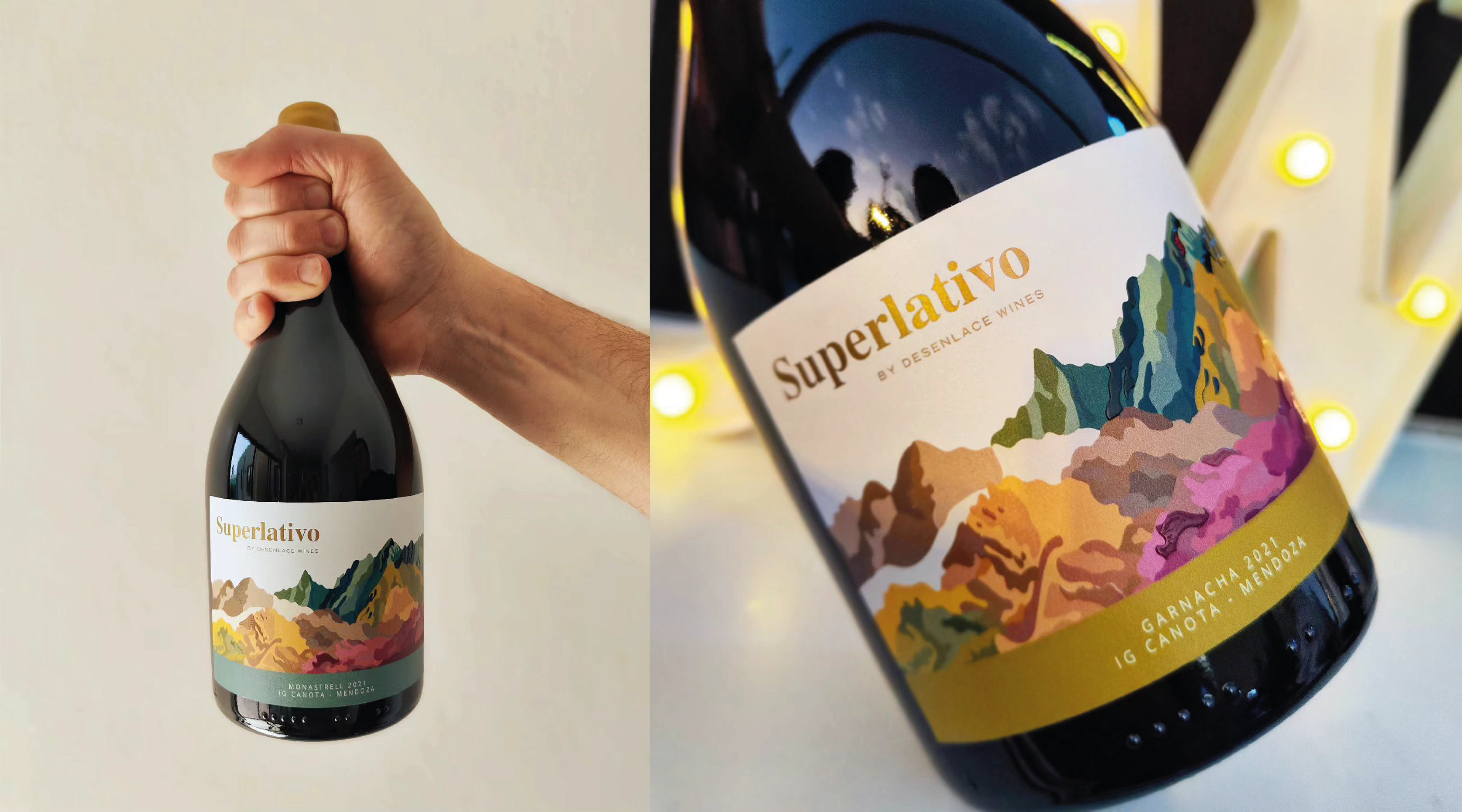 The label design aims to capture the essence of Mendoza’s landscape, presenting an artistic interpretation of its mountains and valleys. Using a rich and earthy color palette, it reflects the diversity of the terroir, its mineral-rich soils, and the natural beauty that defines this wine region. A visual representation that embodies the identity of Superlativo: a wine born in the vastness of the Andes, full of character and authenticity.